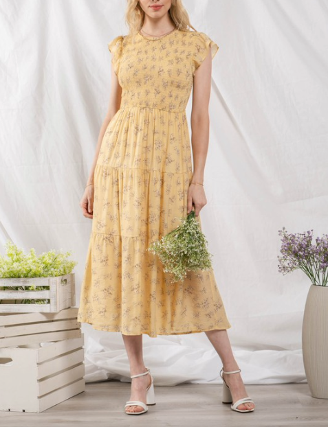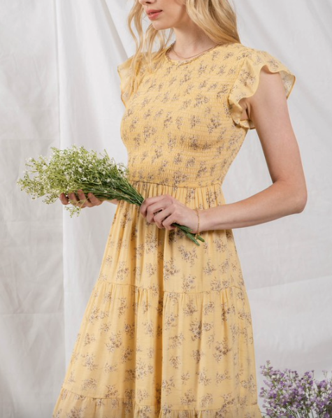 Smocked Spring Printed Dress